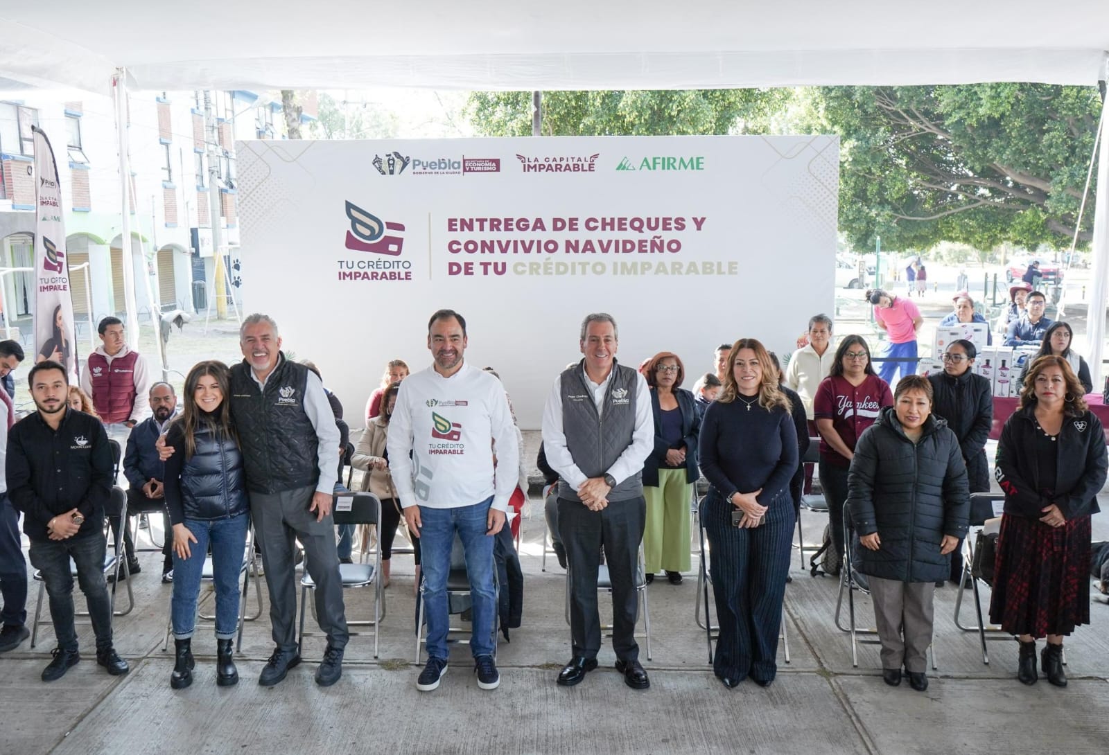 Puebla, Pue., 05 de diciembre de 2025.- El presidente municipal, Pepe Chedraui Budib, encabezó la entrega de 29 cheques simbólicos correspondientes a los esquemas Tu Crédito Individual y Tu Crédito Mujer. Estos apoyos —que van de 10 mil a 149 mil pesos — se otorgan con cero por ciento de interés, ya que el Gobierno de la Ciudad absorbe el costo financiero, permitiendo que cada beneficiario pague únicamente el capital.