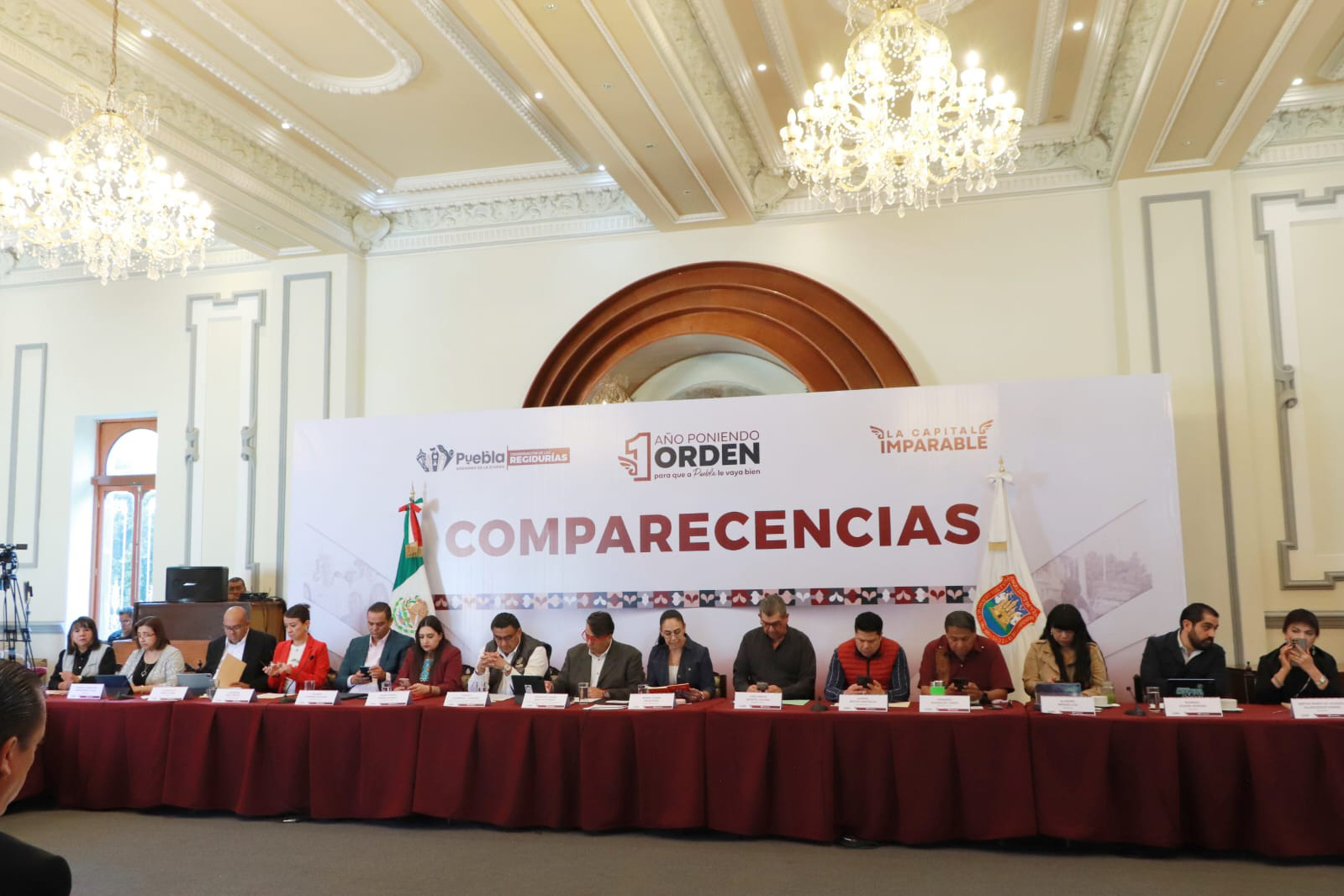 En la comparecencia estuvieron las regidoras y regidores, Alondra Méndez Luis, Bertha Villavicencio Ramos, Georgina Ruiz Toledo, Guadalupe Arrubarrena García, María Esther Ortiz Pérez, Maricela Reyes Rosete, Mayte Rivera Vivanco, Carlos Montiel Solana, Francisco Ayala Gutiérrez, Gabriel Biestro Medinilla, Leobardo Rodríguez Juárez, Manuel Durán Gómez, Ricardo Chavero, Rodrigo Durán y Samuel Hernández Carranza.
