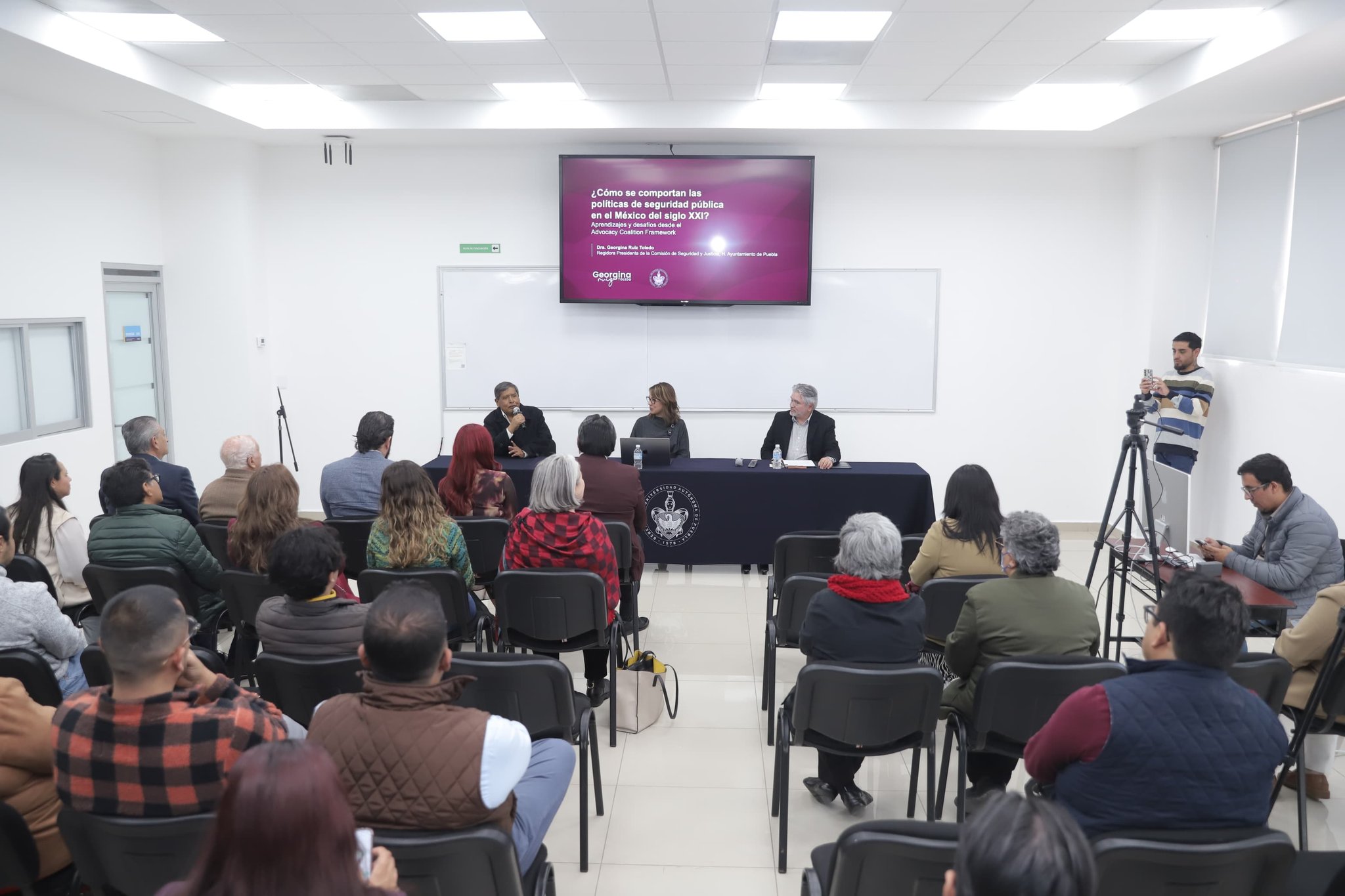 Así lo expresó la regidora presidenta de la Comisión de Seguridad y Justicia del Cabildo de Puebla, Georgina Ruiz Toledo, al inaugurar el semestre académico del Instituto de Ciencias de Gobierno y Desarrollo Estratégico (ICGDE) de la Benemérita Universidad Autónoma de Puebla (BUAP) con la conferencia magistral titulada: “¿Cómo se comportan las políticas de seguridad pública en el México del siglo XXI? Aprendizajes y desafíos desde el Advocacy Coalition Framework”, en el marco de la cátedra magistral Dieter Nohlen.
